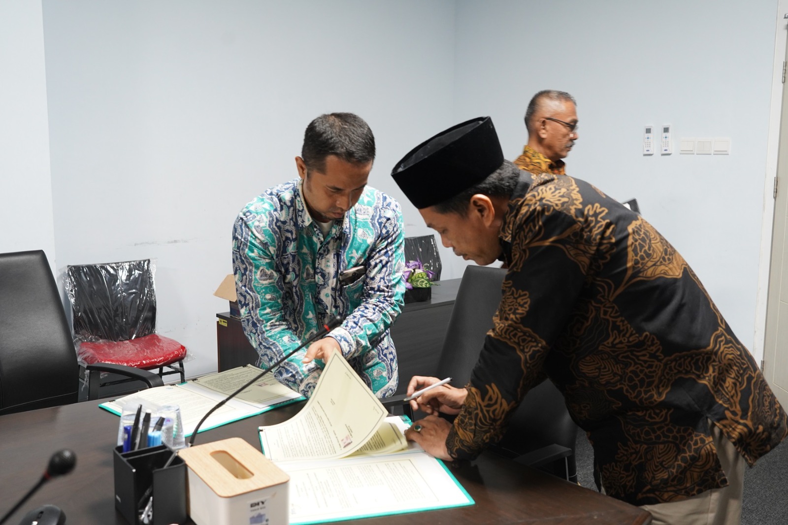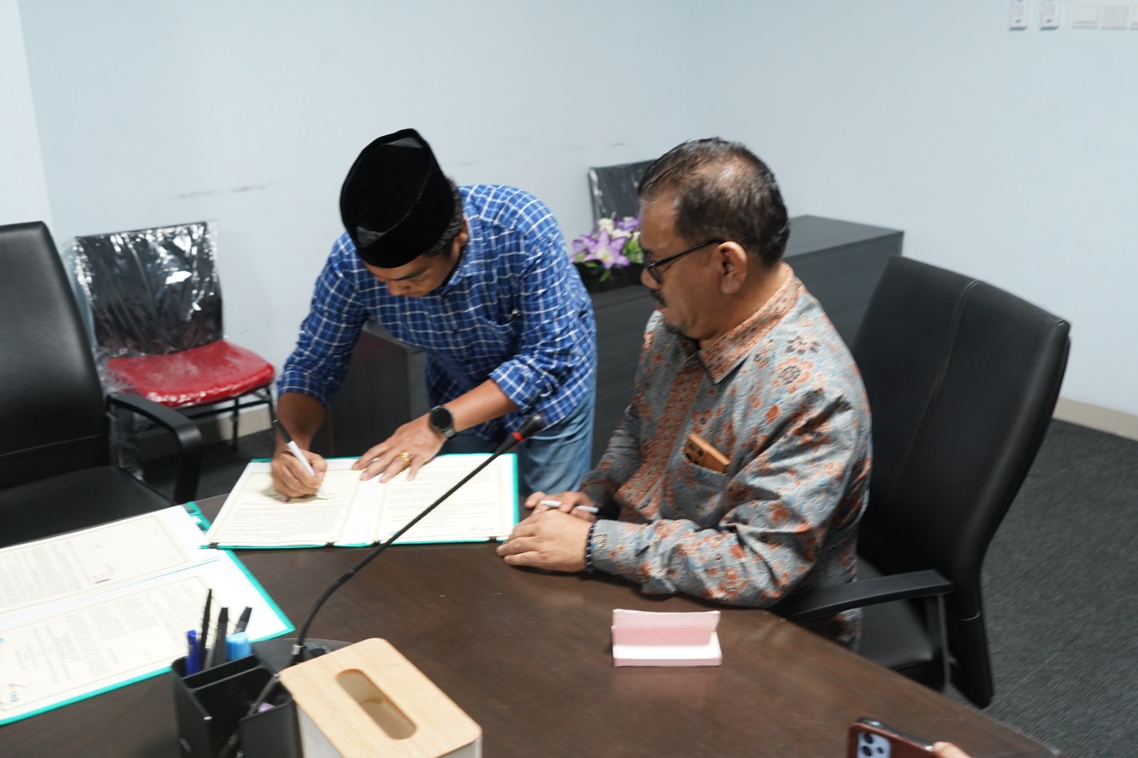 Rektor Universitas Islam Negeri (UIN) Sultan Thaha Saifuddin (STS) Jambi, menandatangani naskah Memorandum of Understanding (MoU) bersama dengan PT Buana Visualnet Sentra di ruang rapat rektor, Kamis (2/05).